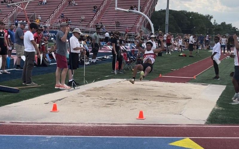 Quest Clay qualified to state in long jump with a PR jump of 21-0.