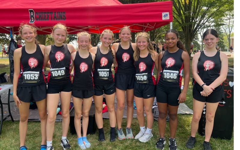 The BMS boys’ team excelled with a 7th-place finish out of 24 teams. Andrew Myers led the Chiefs with a personal best time of 12:08, placing 9th out of 155 runners. Sennett Stolly and Jackson Maus also earned individual awards, finishing 15th and 38th, respectively. Full results for the boys’ team were: