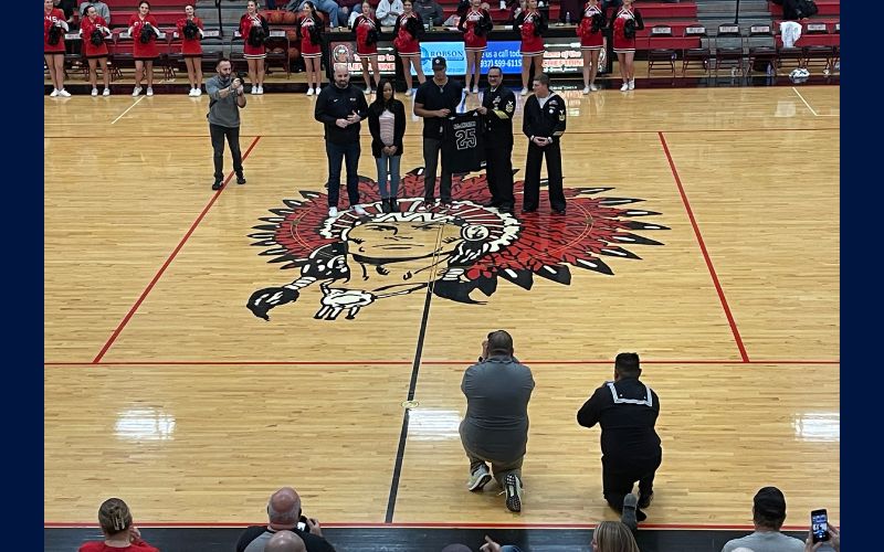The Navy presented St. Clair with an All-American game jersey during halftime of the Bellefontaine vs. Urbana boys basketball game on Friday night.