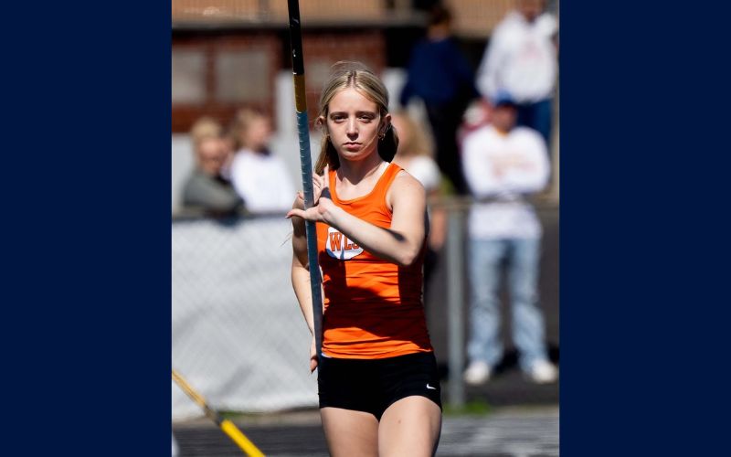Elise Longshore placed 12th out of 18 vaulters in pole vault with a height of 10′ 6″.